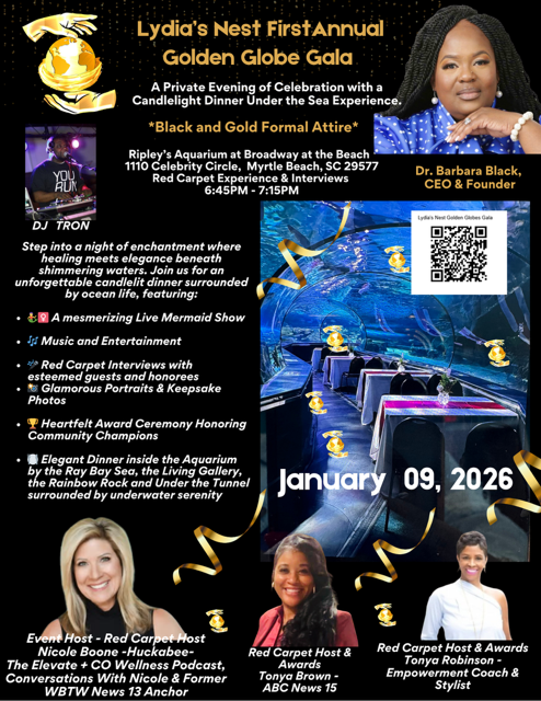 We are delighted to invite you to an unforgettable evening at the Golden Globe Gala, taking place at the breathtaking Myrtle Beach Aquarium. January 09, 20266:45PM – 7:15PM Join us for “A Night Under the Sea” — a unique gala experience surrounded by the beauty of ocean life. Enjoy an evening of elegance, live entertainment,…